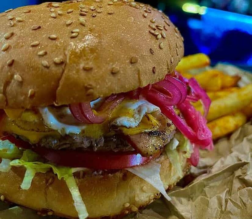 Булочка, соус цезар, рвана яловичина, салат коул слоу, смажене яйце, цибуля маринована, помідор, бекон смажений, сир чеддер, 400 грам …