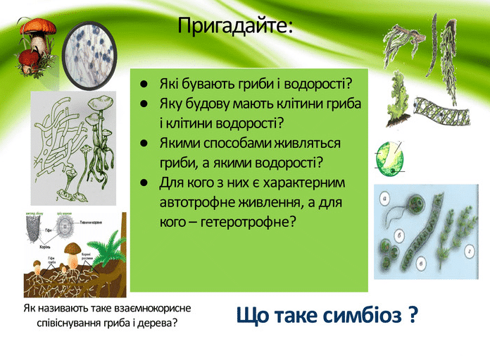 Гриб утворює основу тіла лишайника, а клітини водорості містяться всередині. Водорість здатна до фотосинтезу й постачає грибу поживні речовини, а він захищає ї …