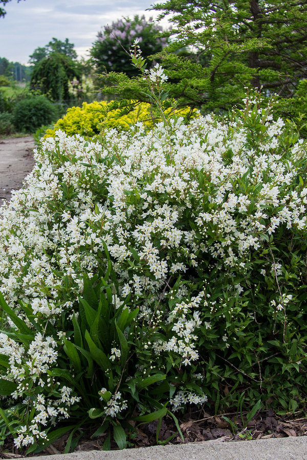 Зацвітає рослина в середині червня, квіти – маленькі, білі, зібрані в кисті довжиною до 12 сантиметрів;; Дейція витончена – рослина родом з Японії. Чагарник …