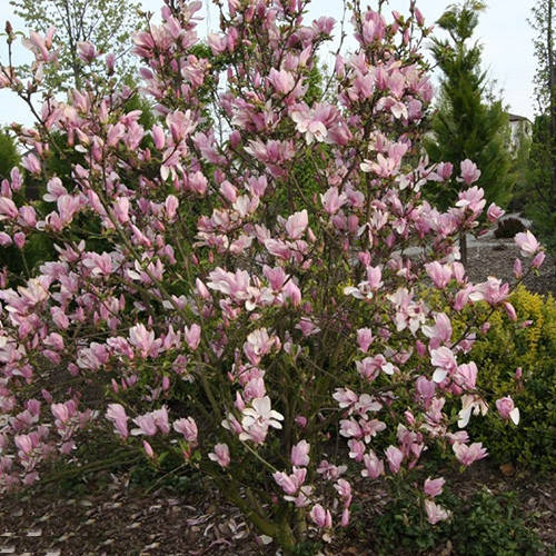 Магнолія Mulan може цвісти 2 рази на рік (травень та вересень), висота куща чи деревця – не більше 4 метрів, квіти можуть мати різноманітні відтінки від світло-рожевих до темних. Перше цвітіння у травні може відбуватися до розпускання бруньок та появи листя.