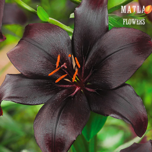 & У висотутака лілія сягає 80 – 110 см, красиві пелюстки чорного кольору при світлі маютьнасичений бордовий відтінок. Яскраві помаранчеві тичинки прекрасно …