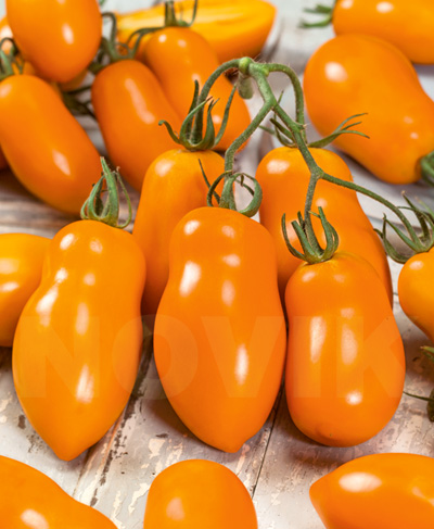 Помідор Перцевидний Помаранчевий мають акуратну перцевидну форму, насичене забарвлення, щільну глянсову шкірку. Плоди досягають ваги 90-130 г, смак солодкий.
