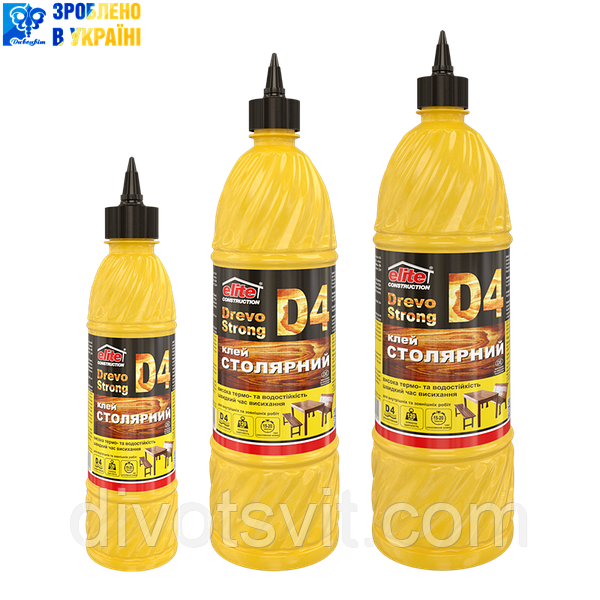 Столярний клей D4 застосовується під час виробництва, збирання, склеювання або ремонту столярних виробів: віконних брусів;; дверних полотен;; корпусні …