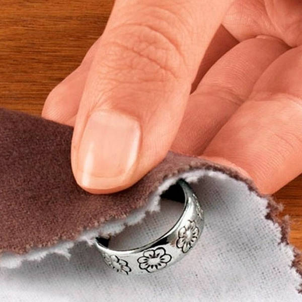 Для очищення срібла в домашніх умовах потрібно взяти 9% оцет і нагріти його на плиті. Цей спосіб підходить для очищення виробів з напівдорогоцінним камінням. Як почистити срібло оцтом? Протримайте прикраси в нагрітому оцеті 15-20 хвилин (якщо це свіжі забруднення) чи 2-3 години, якщо срібло почорніло вже давно.