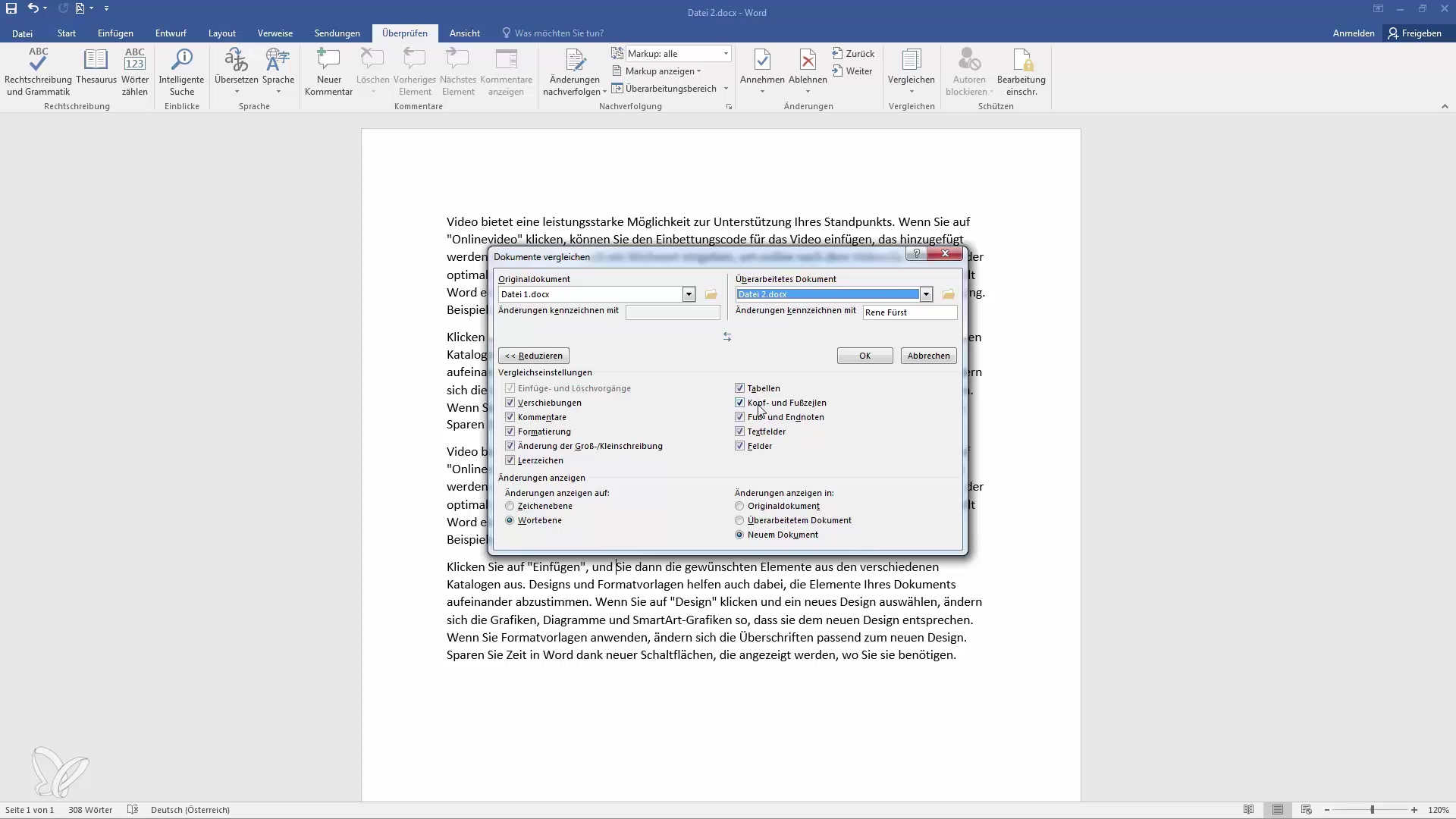 Відкрийте два документи, які потрібно порівняти. На вкладці Рецензування в групі Порівняння натисніть кнопку Порівняти.