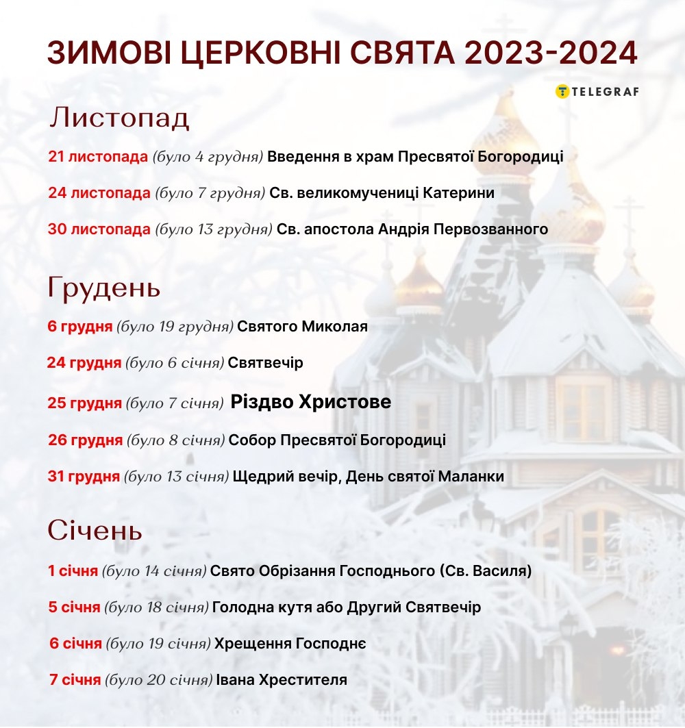 Старий Новий Рік, 14.01.2026, 190 дн. ; День Тетяни, 25.01.2026, 201 дн. ; Міжнародний жіночий день, 08.03.2026, 243 дн. ; Пасха / Великдень, 12.04.2026, 278 дн.