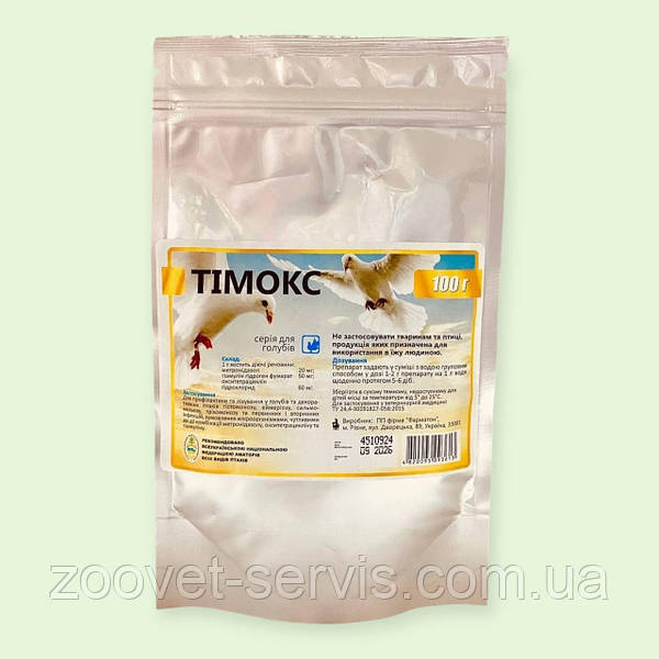 Підходить для лікування домашньої птиці, включно з голубами та декоративною птицею. До складу Тимоксу входить кілька компонентів, основним серед …